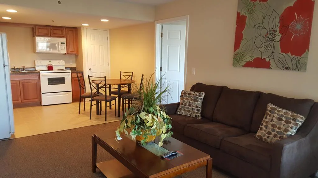 Our two bedroom condos sleep up to 8 guests with a King bed in one bedroom and two queen beds in the second bedroom as well as a queen size sleeper sofa in the living room. All units are equipped with full kitchens and washer/dryer units.